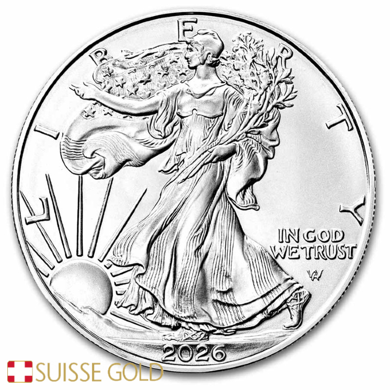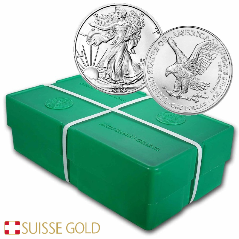 SuisseGold.com bietet die 2026 American Eagle Silber Monsterbox mit weltweiter Lieferung und sicherer Lagerung. Zahlungen sind per Banküberweisung in über 20 Währungen oder mit Kryptowährungen wie Bitcoin und Ethereum möglich.