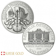 The platinum Philharmonic has a face value of €100, and is available individually, in tubes of 10 coins or in monster boxes of 100 coins. All coins are guaranteed by the Austrian Mint and the Austrian government.