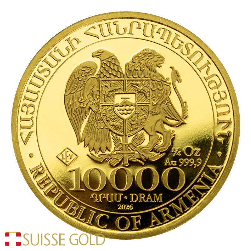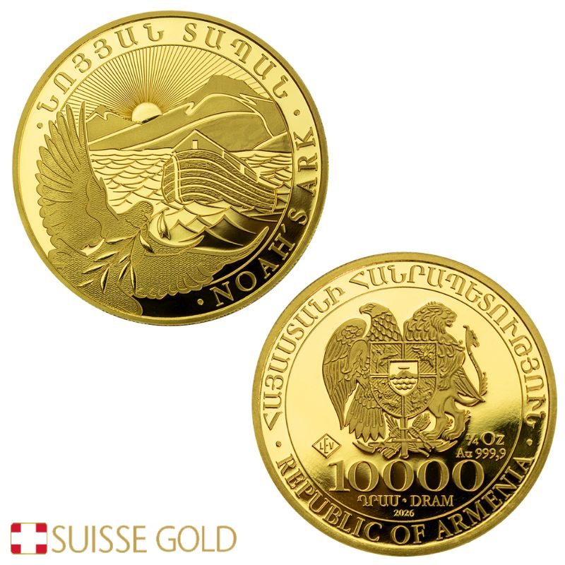 At SuisseGold.com, you can purchase the complete selection of Armenian Noah’s Ark gold and silver coins, including both new issues and backdated years. Orders can be shipped worldwide or securely stored in our Swiss vaults near Zurich.