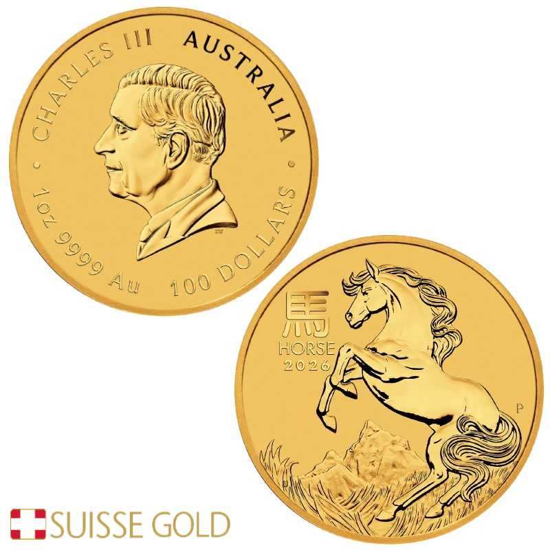 At SuisseGold.com, clients can purchase the 2026 1 oz Lunar Horse Gold Coin with worldwide shipping or opt for secure, VAT-free Swiss vault storage. Payments are accepted in 20+ major currencies and 8 cryptocurrencies, including Bitcoin, ensuring flexibility for international buyers.