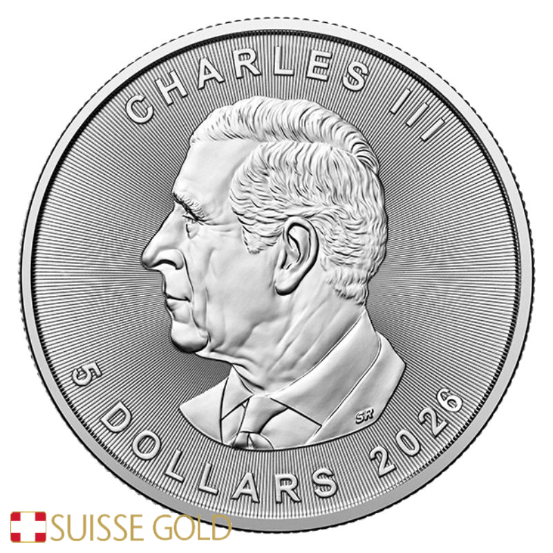 L’edizione 2026 prosegue la tradizione di eleganza e precisione. Il dritto raffigura un ritratto dettagliato di Re Carlo III, insieme all’anno di emissione 2026 e al valore nominale di 5 dollari canadesi. Il rovescio mostra la celebre foglia d’acero, simbolo nazionale del Canada, con il peso (1 oncia) e la purezza (9999 argento fino) chiaramente incisi.
