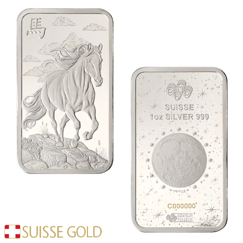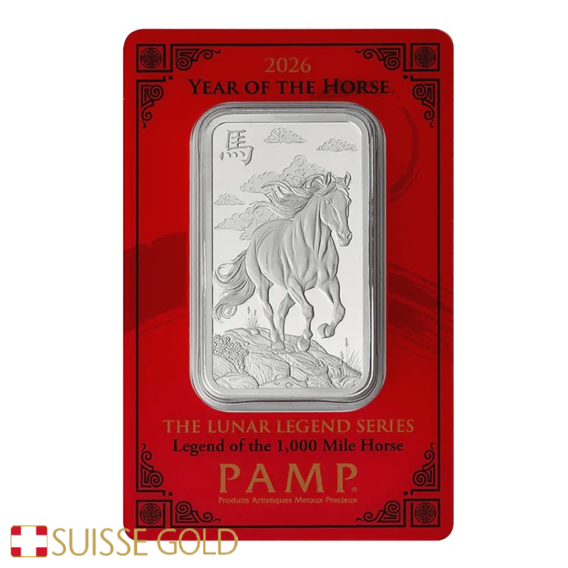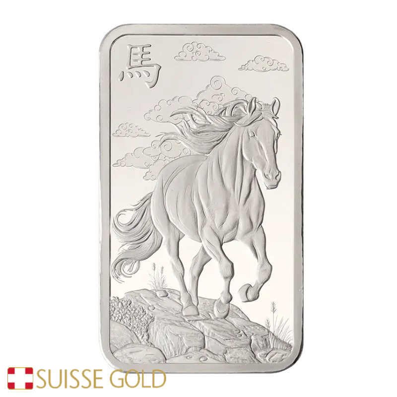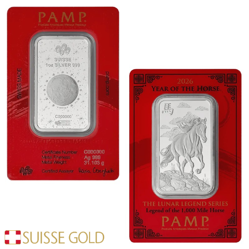 A edição de 2026 apresenta a imagem de um cavalo — símbolo de força, liberdade e resistência na tradição chinesa — gravado em ambos os lados do lingote. Cada peça é numerada individualmente e selada na embalagem vermelha CertiPAMP, que inclui um certificado oficial garantindo peso, pureza e teor de prata.