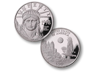 Платиновая монета «Американский орел» производится Монетным двором США. Монета доступна в весе 1/10, 1/4, 1/2 и 1 унция.