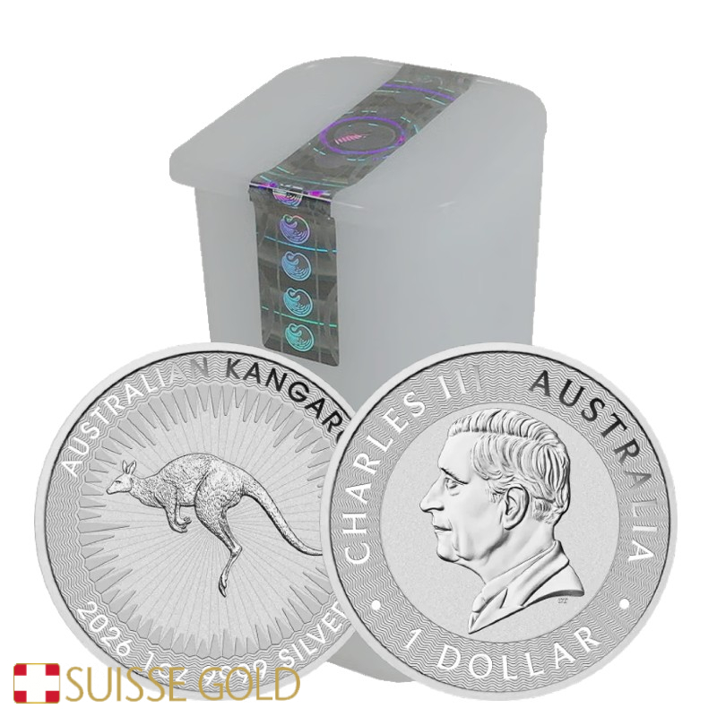 Tube of 25 x 2026 Australian Kangaroo 1 Ounce Silver Coin